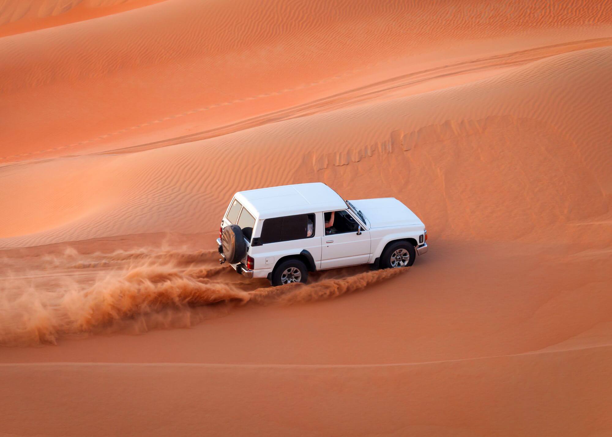 Este activitatea-vedetă. Are loc în general cu mașini Toyota Land Cruiser sau Nissan Patrol, adaptate pentru off-road. Durează între 20 și 45 de minute, în funcție de tur. Se face în grupuri mici, dar fiecare mașină are șofer dedicat.